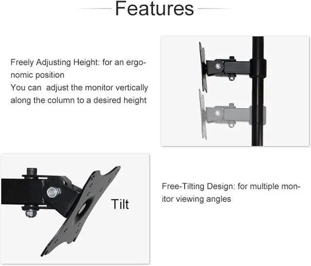 Sturdy Steel Construction - Provides excellent support and durability for one 14 - 27 monitor weighing up to 17.6lbs with VESA 75x75mm and 100x100mm mounting holes.