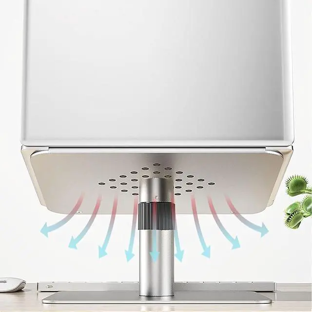 Our laptop desktop stand has 32 large-aperture heat dissipation holes, which is more efficient with aluminum alloy material for heat dissipation