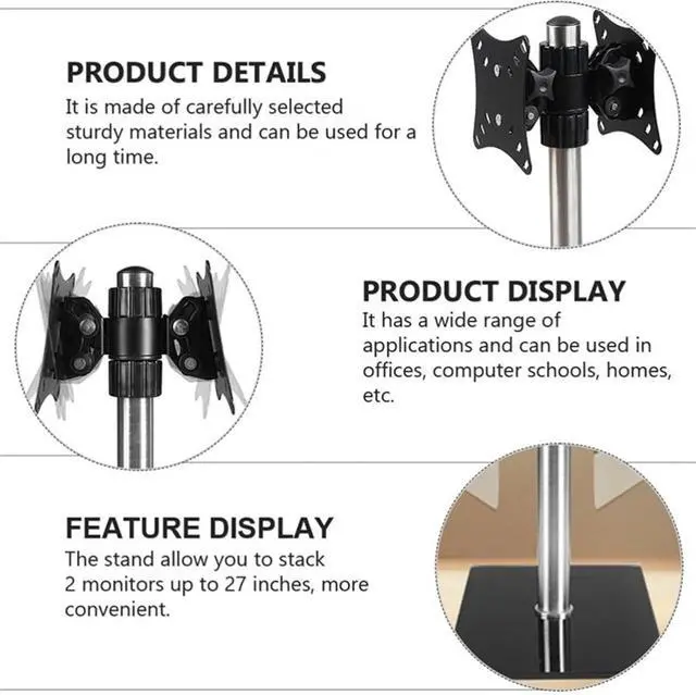 Adjustable: Monitors can move up and down along the 16 height pole. It allows +/-15° tilt and 0°/360° rotation.