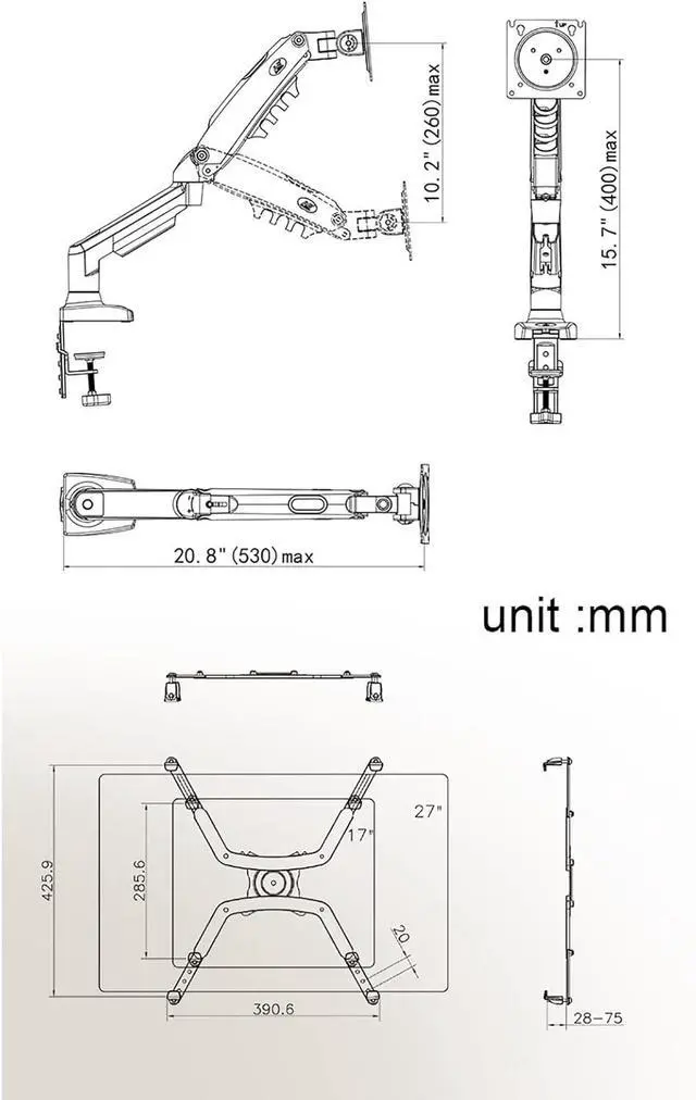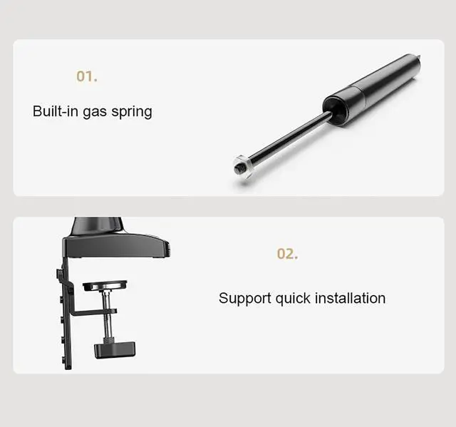 FULLY ADJUSTABLE - The adjustable gas spring system ensure easy positioning of your monitor in any desirable position, Adjustment is not stuck, supports high and low lift, front and back stretch, and screen rotation to find the best ergonomic position.