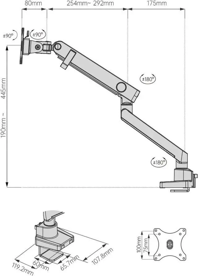 UNIVERSAL COMPATIBILITY - The monitor mount is designed for most 17 to 35 flat screen computer, hold up to 17.6lbs/8kg, compatible with VESA standard 75x75mm and 100x100mm.