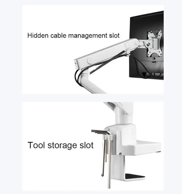 FREE UP YOUR DESK SPACE - Heavy-duty monitor arm with built-in cable control professionally helping to hide wires. The large screen is suspended, which can free up a complete desktop space and create a better working environment