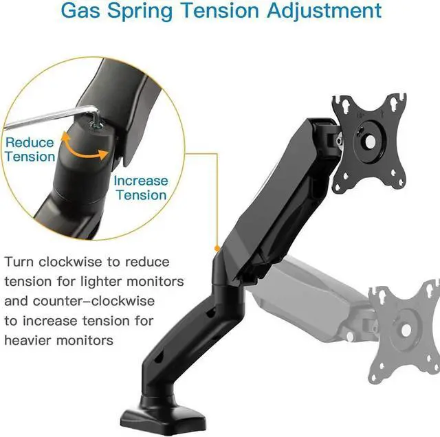 EASY TO INSTALL - Includes all of the associated accessories and a manual. CAUTION: The gas spring is in low voltage under original condition. To maintain the weight of your monitor (load capacity: 2-6.5KG), please set the gas spring tension knob to the correct voltage. Our monitor bracket can not be used for desks made of PB, MDF or GLASS