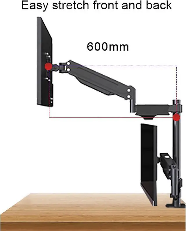 FULLY ADJUSTABLE - The adjustable gas spring system ensure easy positioning of your monitor in any desirable position, Adjustment is not stuck, supports high and low lift, front and back stretch, and screen rotation to find the best ergonomic position.