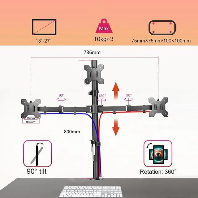UNIVERSAL COMPATIBILITY - The monitor mount is designed for most 13 to 27 flat screen computer, hold up to 22lbs/10kg, compatible with VESA standard 75x75mm and 100x100mm.