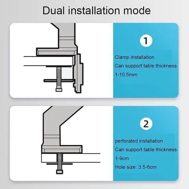 TWO DESK MOUNT OPTIONS - The unit can be mounted using the provided C-clamp or by using perforated installation. Clamp method fits most desks 1-10cm/0.39-3.93inch thick while perforated installation fits desks 1-10cm/0.39-3.93inch thick.