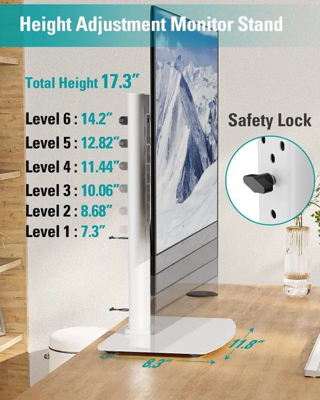 Health Benefits-The computer monitor mount offers -30°to +30°tilt-45°to +45°swivel, 360° rotation, and has 6 different height adjustment positions and a total of 6.89 of height movement. You can flexibly adjust the angle and height of the screen to make it in the healthiest and most comfortable position, releasing the pressure on your neck and shoulders and maintaining good vision. Keeps you in good shape at work.