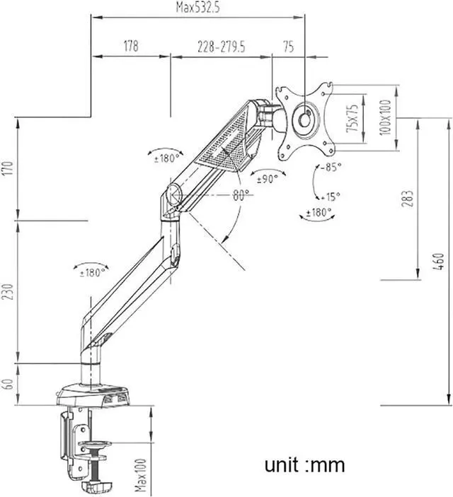 TWO DESK MOUNT OPTIONS - The unit can be mounted using the provided C-clamp or by using perforated installation. Clamp method fits most desks 2-10cm/0.78-3.93inch thick while perforated installation fits desks 2-9cm/0.78-3.54inch thick