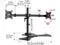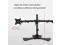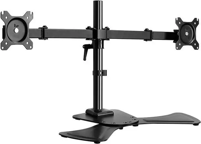 The dual monitor mount installs two screens ranging in size from 17" to 27" and weighing 17.6 pounds, each with a VESA 75x75mm or 100x100mm rear mounting hole