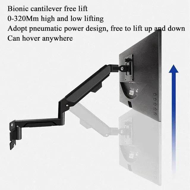 Bionic cantilever: free lifting. 0-320mm height lifting. It adopts pneumatic power design. It can rise and fall freely and can hover at any position to suit your sitting and standing height.