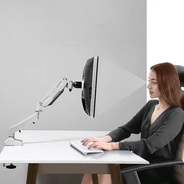 FULLY ADJUSTABLE - The adjustable gas spring system ensure easy positioning of your monitor in any desirable position, Adjustment is not stuck, supports high and low lift, front and back stretch, and screen rotation to find the best ergonomic position.