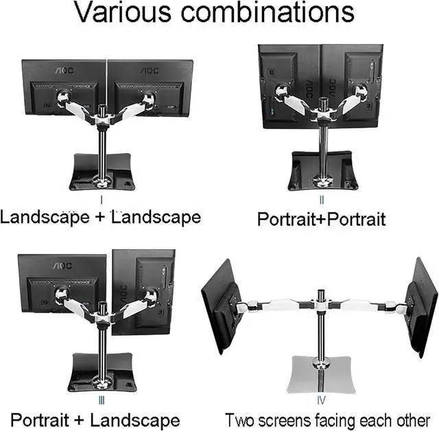 COMPATIBILITY -- This is a monitor stand suitable for Dual screen, Fits most 12-24 inches TVs, max bearing 15kg,supporting hole spacing within 100*100mm, Can be height-adjusted, 360° horizontal and vertical screen switchingwhich is easily applicable to different monitor.