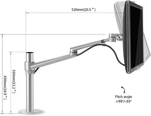 FREE UP YOUR DESK SPACE - Heavy-duty monitor arm with built-in cable control professionally helping to hide wires. The large screen is suspended, which can free up a complete desktop space and create a better working environment