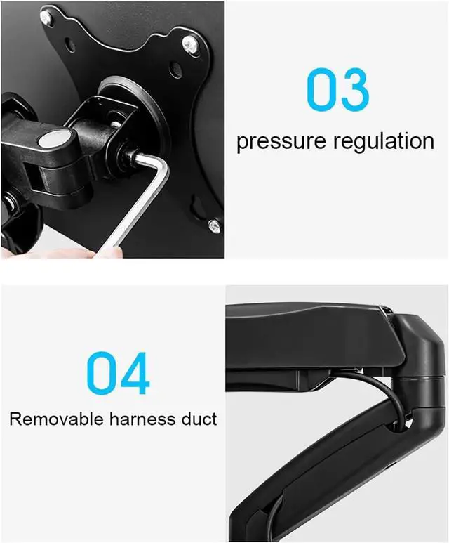 FREE UP YOUR DESK SPACE - Heavy-duty monitor arm with built-in cable control professionally helping to hide wires. The large screen is suspended, which can free up a complete desktop space and create a better working environment
