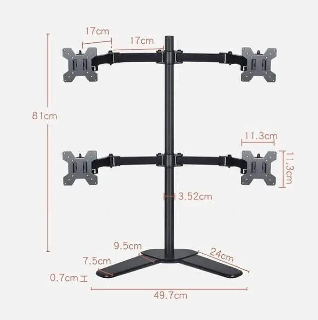 COMPATIBILITY -- TV stand mount Fits most 10-27 inches TVs, max bearing 8kg,supporting hole spacing within 100*100mm, Can be height-adjusted, 360° horizontal and vertical screen switchingwhich is easily applicable to different monitor.