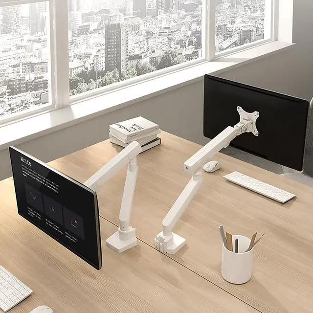FREE UP YOUR DESK SPACE - Heavy-duty monitor arm with built-in cable control professionally helping to hide wires. The large screen is suspended, which can free up a complete desktop space and create a better working environment