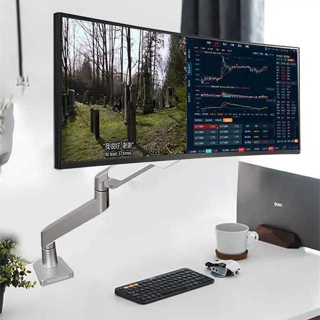 FREE UP YOUR DESK SPACE - Heavy-duty monitor arm with built-in cable control professionally helping to hide wires. The large screen is suspended, which can free up a complete desktop space and create a better working environment