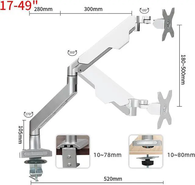 UNIVERSAL COMPATIBILITY - The monitor mount is designed for most 17 to 49 flat screen computer, hold up to 29.7lbs/13.5kg, compatible with VESA standard 75x75mm and 100x100mm.