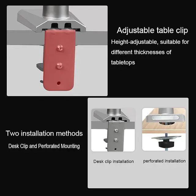 TWO DESK MOUNT OPTIONS - The unit can be mounted using the provided C-clamp or by using perforated installation. Clamp method fits most desks 1-7.8cm/0.39-3.07inch thick while perforated installation fits desks 1-8cm/0.39-3.14inch thick