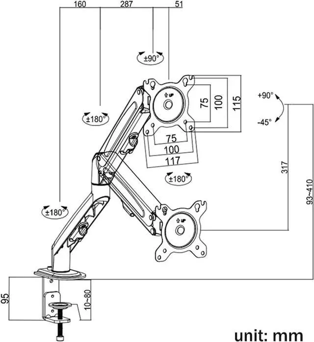 Customized Screen Angles - The full motion monitor arm allows your monitor tilt, rotate and swivel to find an optimal angle for your work as you need; super easy to adjust your screen from landscape to portrait mode.