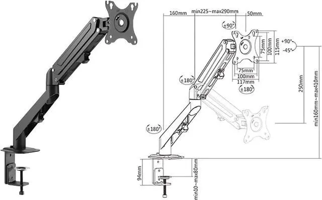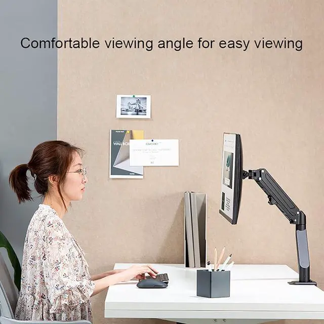FULLY ADJUSTABLE - The adjustable gas spring system ensure easy positioning of your monitor in any desirable position, Adjustment is not stuck, supports high and low lift, front and back stretch, and screen rotation to find the best ergonomic position.