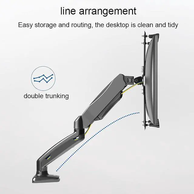 FREE UP YOUR DESK SPACE - Heavy-duty monitor arm with built-in cable control professionally helping to hide wires. The large screen is suspended, which can free up a complete desktop space and create a better working environment