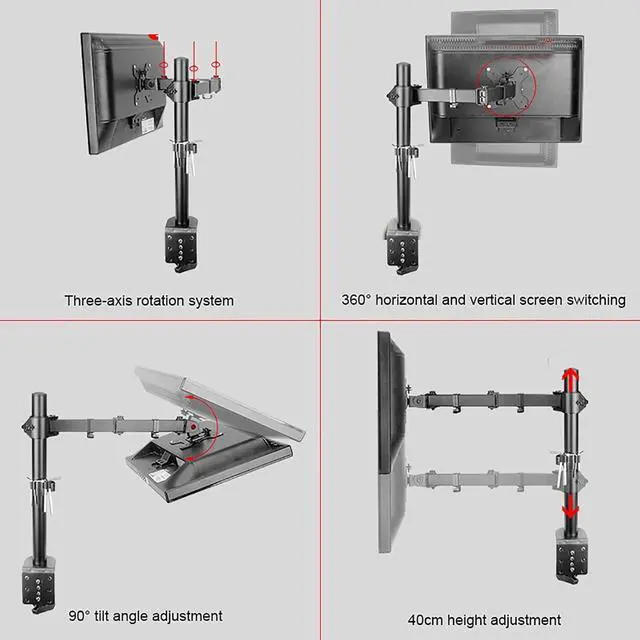 FREE UP YOUR DESK SPACE - Heavy-duty monitor arm with built-in cable control professionally helping to hide wires. The large screen is suspended, which can free up a complete desktop space and create a better working environment