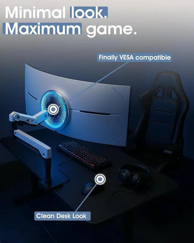 The 75x75mm adapter is compatible with any standard VESA monitor mount. Thanks to the 3IDEE VESA monitor mount for Samsung Odyssey G7, G8, G9: Turn your desk into an ergonomic workstation.