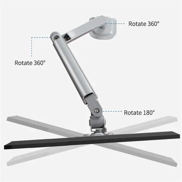Adjustable Pneumatic Arm - The powerful pneumatic arm offers a height range of 5.9 to 18.5, and the mounting bracket features +90° to -90° tilt, 180° swivel, and 360° rotation for comfortable viewing angles.