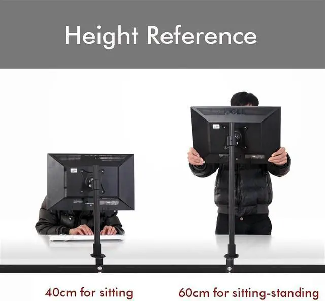 Double Benefits: Monitor arm is easily adjustable on the 15.7 height pole. Double efficiency and productivity by opening up desk space allow working in a more comfortable, ergonomically correct position to reduce neck and eye strain.