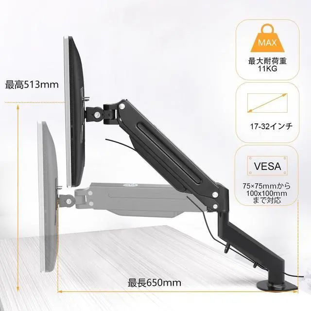Space-saving: It does not require a pedestal of a monitor, so you can store papers and keyboards in the space under the monitor, allowing you to use it widely. The inner arm has a cable holder that can store cables so you can wire cables neatly No cable to play or get in the way