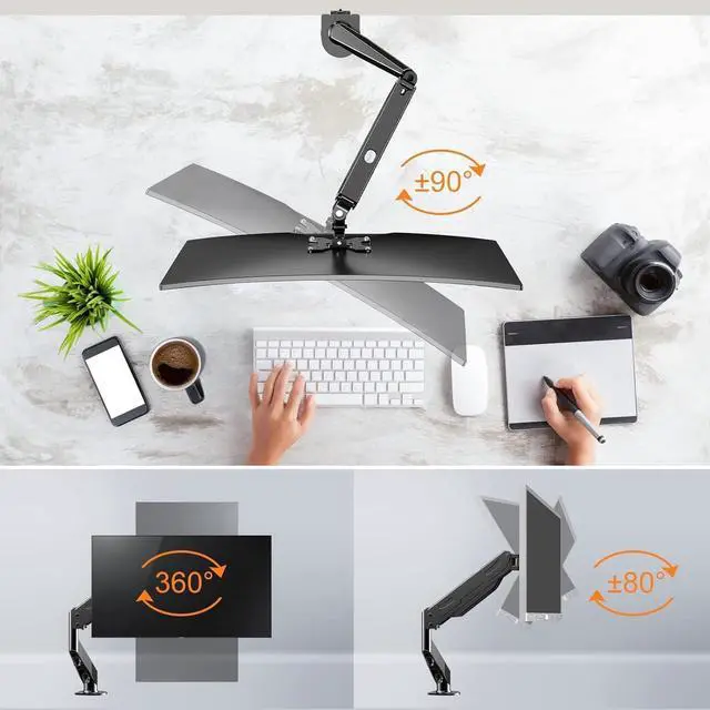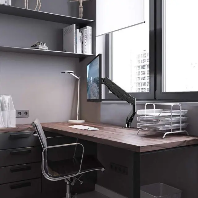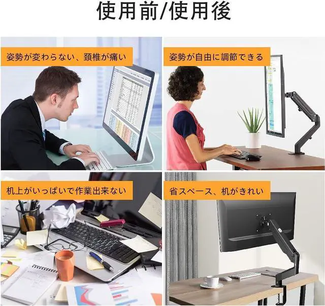 [Anti-Slouch] The gas spring type allows you to adjust the height of your slick. The monitor arm can be adjusted in various angles, and has high degree of flexibility. And you can stand it up to work. You can adjust the angle and distance to yourself to relax back and neck fatigue