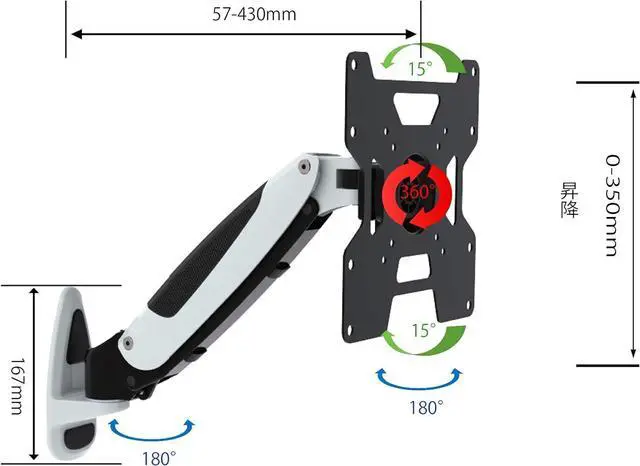 Wall mounted for large screen monitors up to 55 inches The gas type allows you to smoothly adjust the arm position. Fits large screens up to 55"