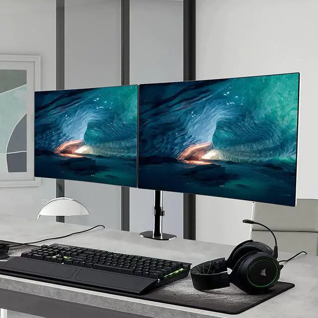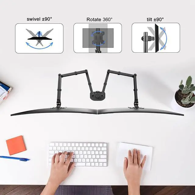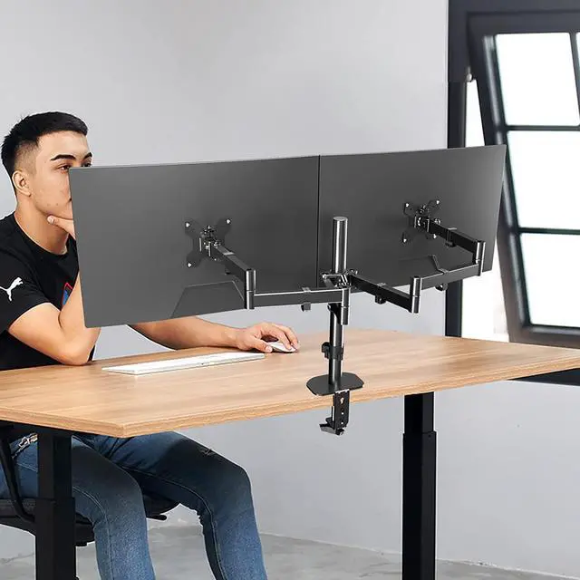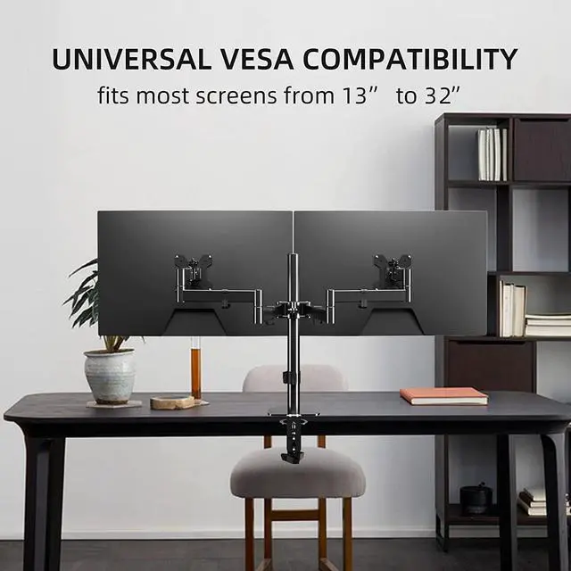 EASY TO ADJUST: The dual monitor arm offers swivel: +/- 90° rotation: 360° to tilt: +/-90° and height adjustment along the vertical pole. Monitor can be placed in landscape or portrait direction.