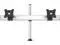 Suspend two flat panel LCD monitors above work surface (side-by-side). The ultimate in effortless fingertip monitor positioning