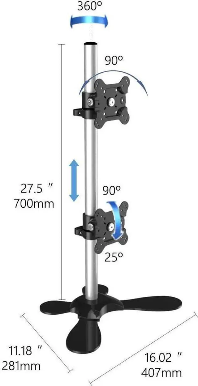 The Vertical Dual Monitor Freestanding Mount, provides an aesthetic & stable solution. Independent adjustment of each screen for proper ergonomic