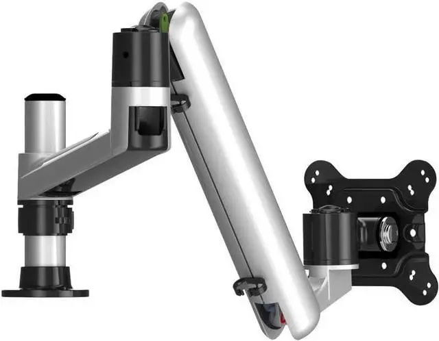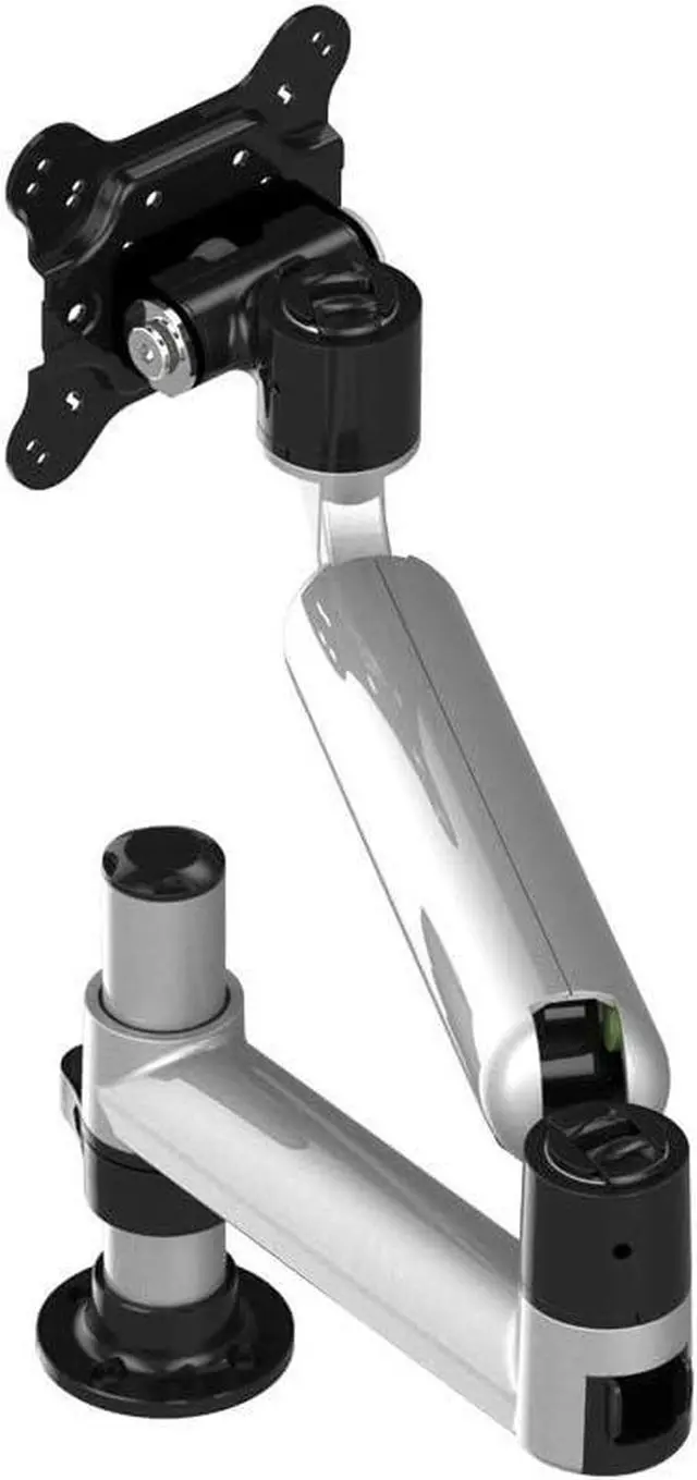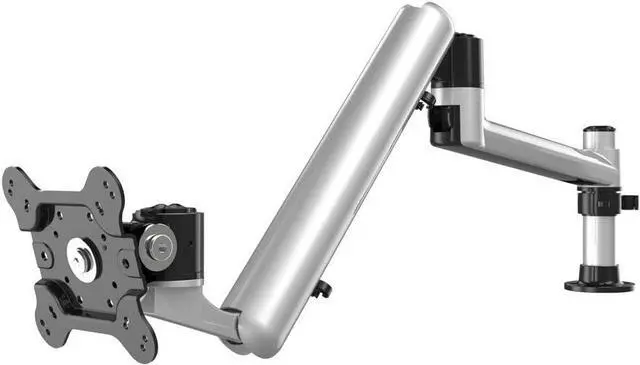 Maximum adjustment rendered by tilting, swiveling, rotation and dynamic height adjustment. Spring arm design makes extension, retraction and height adjustments dynamically and easily