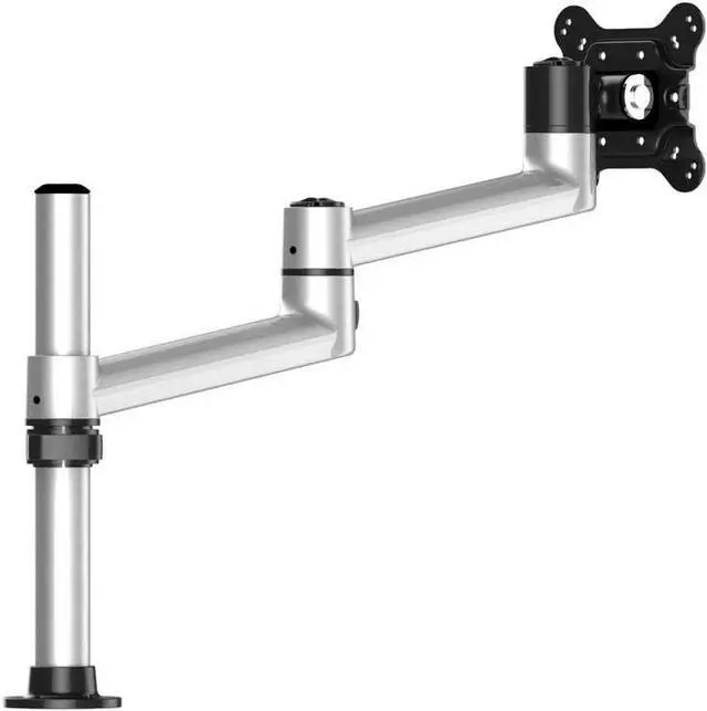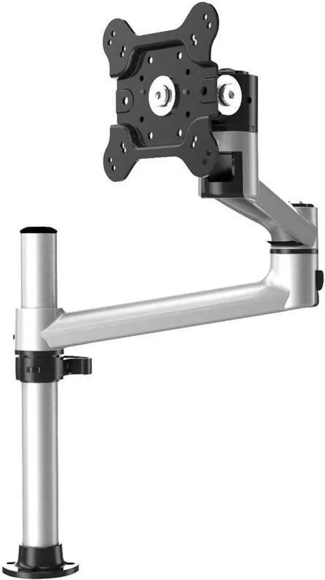 Articulating single monitor stand suspends one monitors above desk, extends 21.5" (546 mm)