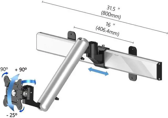 Dual-directional wall mount bar can be placed vertically or horizontally; making it flexible for single stud or double stud mounting; Length: 31.5" (80cm). Neat and efficient cable management