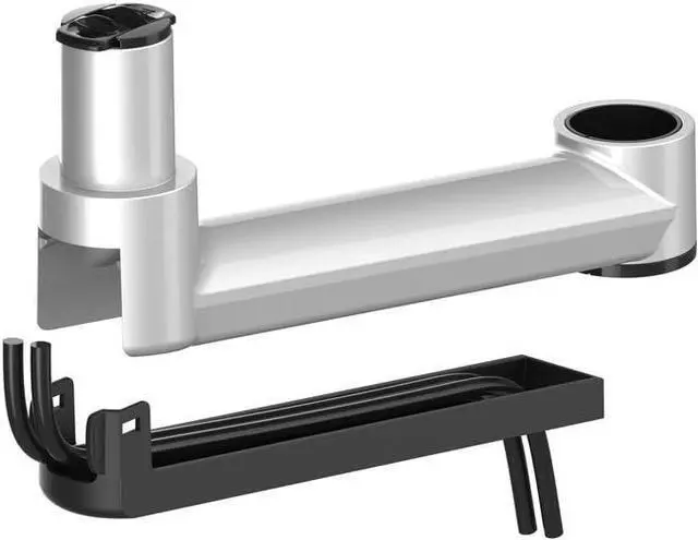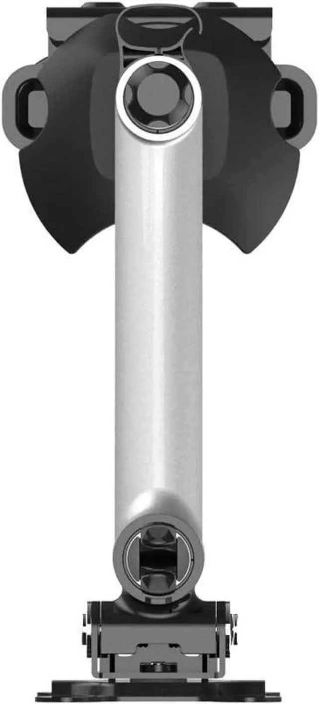 Quick release/attachment mounting head and swivel arm to assist with multiple installations. Cable management housings and clips on the underside of the arms route and hide cords