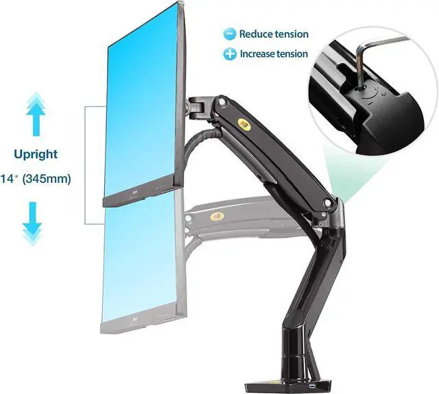 FULLY ADJUSTABLE: The durable gas spring system ensures easy one-touch positioning of your screen in any desirable setting; enhanced with 2 USB hubs for your convenience