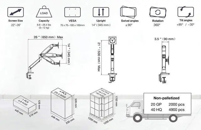 STABLE: C-clamp on any working surface or grommet installation; comes with all needed hardware. Heavy duty construction and superb quality materials of the arm mount provide stable fixation of your screen; TV screen or monitor will remain securely fixed in any intermediate position