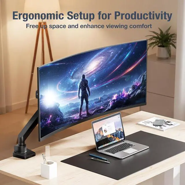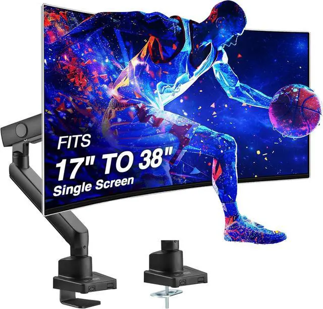 Fits 17" To 38" Screen - Single monitor desk mount fits most flat/curved/ultrawide computer monitors up to 26.4 lbs (12 kg) in weight with VESA 75x75mm or 100x100mm mounting holes. NOTE: Please ensure you use the VESA screws that came along with your computer monitor or TV as this product does not include all screw sizes.