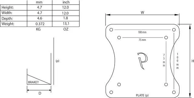 VESA BRACKET PATTERN: 75mmx75mm, 100mmx100mm