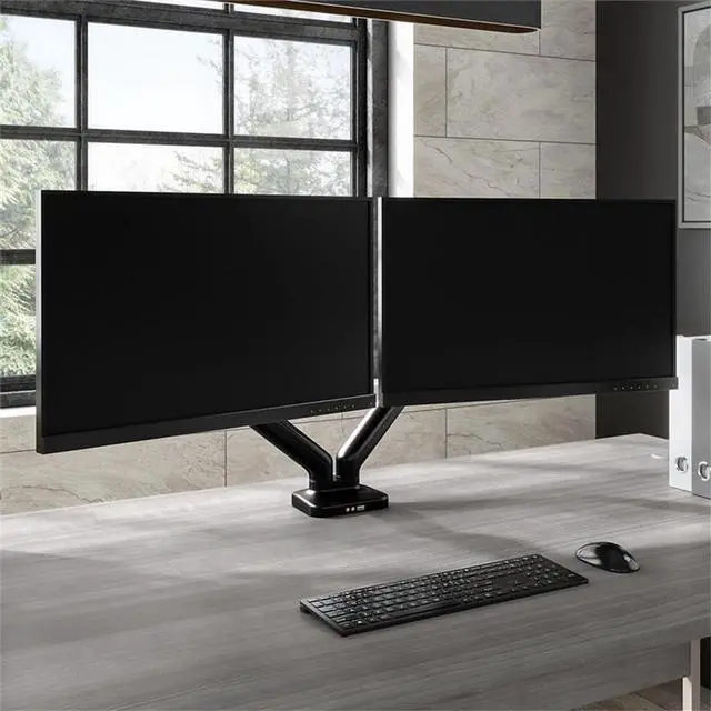 Dual Monitor Arm accommodates two 17"-32" computer screens weighing up to 20 lbs. each