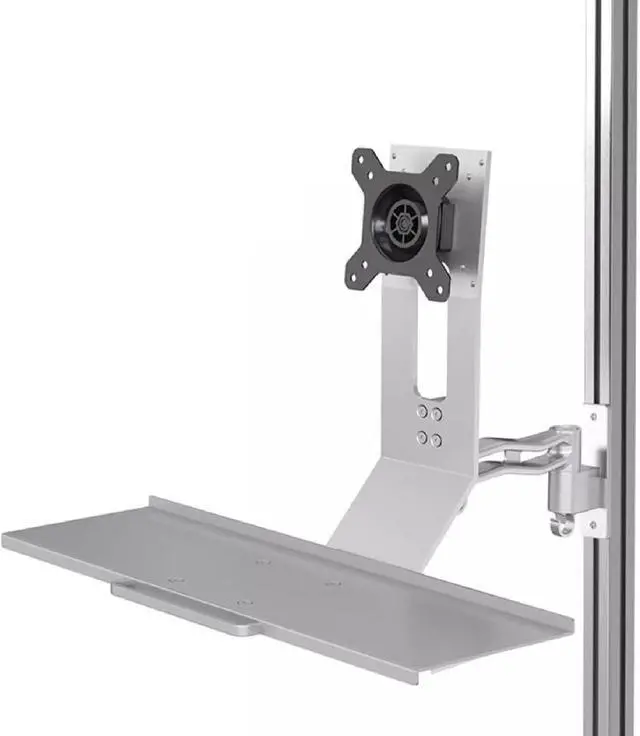 Optimized Workstation: The intuitive keyboard tray beneath the display stand features a padded wrist rest. Integrated cable management is built along the sturdy steel aluminum frame's side, concealing unwanted cables and wires.