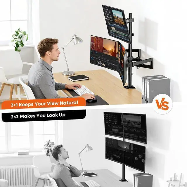 Optimized Multi-Screen Workspace: By mounting four monitors vertically and horizontally, this desk mount frees up over 80% of desktop space compared to traditional stands; Ideal for traders, programmers, designers, and multitaskers who require efficient screen management and a clean, organized workstation