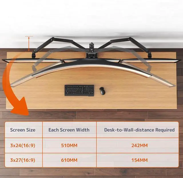 Advanced 3-Section Arm Design: Tired of monitor arms that sag at the joints? Our 3-section arm distributes weight evenly to hold your monitor steady and level. Need a closer fit? Simply remove one segment to reduce the arm's extension, achieving a tighter setup near the wall.