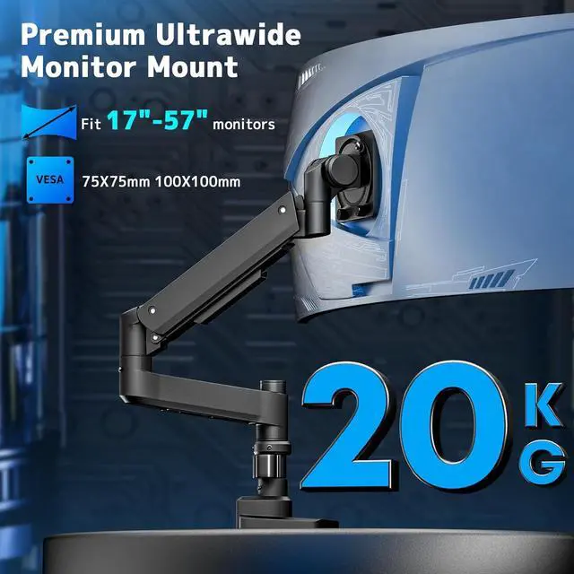 Supports 57 Ultrawide Monitors: Designed for screens from 17 to 57 and holds up to 20 kg Compatible with VESA 75x75mm and 100x100mm (non-VESA monitors require an adapter)