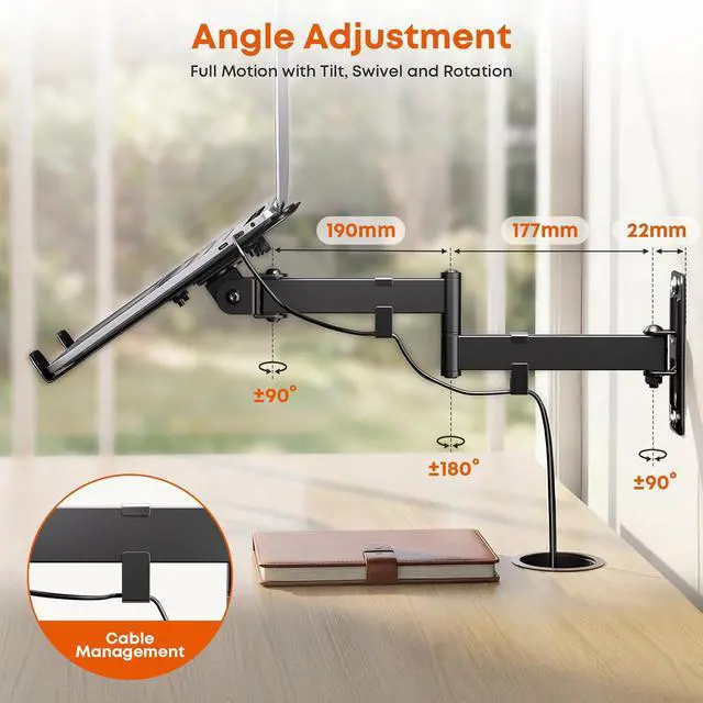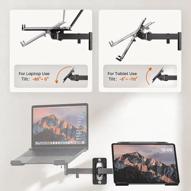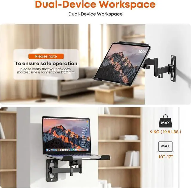 2-in-1 Versatile Laptop Holder: Designed to fits 10-15" laptops and screens up to 32", securely holding devices weighing 4.419.8 lbs. Features universal VESA compatibility (75×75/100×100 mm). No included monitor screwsuse your own for screen mounting
